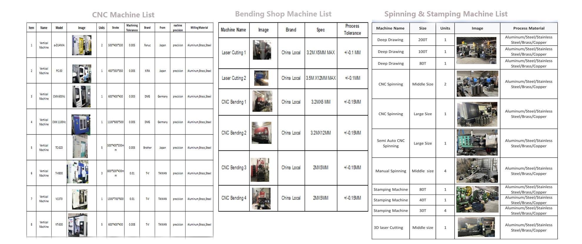 We have 3, 4 , 5 Axis Milling machines, CNC lathe machines, Turning milling compound machines, swiss lathe turning machines , total quantity is around 30 units. Our advanced equipment and skilled craftman ensure top-tier results at competitive prices.